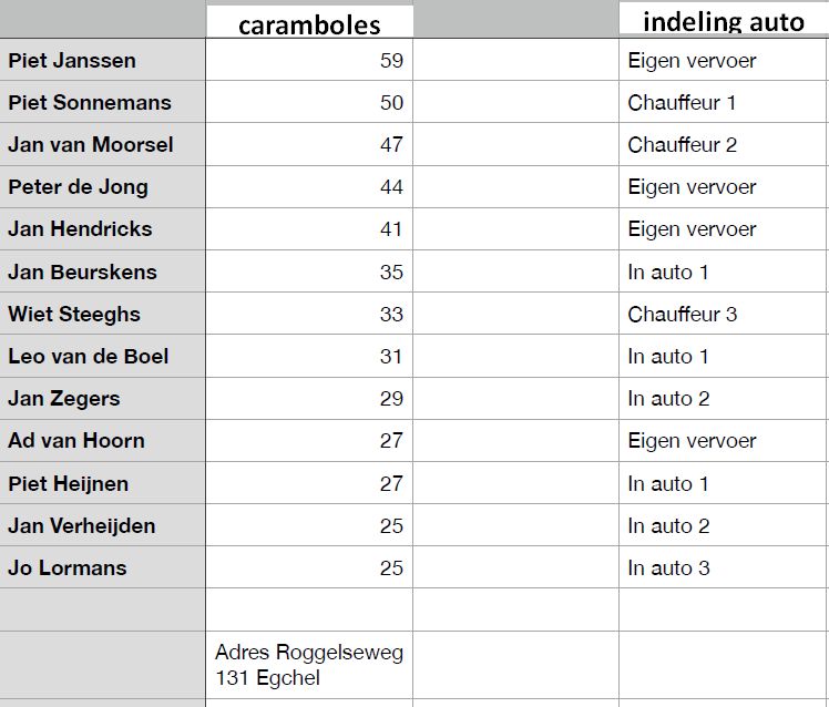 Aanvang van de wedstrijden is 19.00 uur en rond de klok van 23.30 hopen we de terugreis naar Beringe te maken. Klik hier voor meer informatie van deze biljartavond.