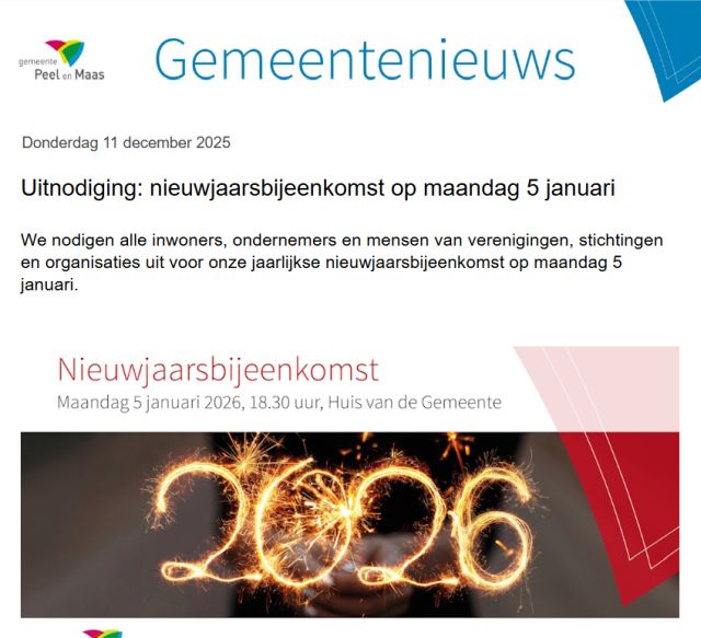 Gemeentenieuws 11 december Geplaatst op 11 december 2025 door Leo van de Boel Delen: Klik om te delen op X (Opent in een nieuw venster) X Klik om te delen op Facebook (Opent in een nieuw venster) Facebook Gerelateerd