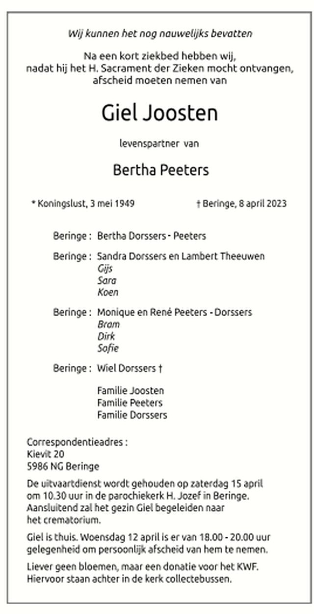 Giel Joosten rouwbrief april 2023 Gepubliceerd 14 april 2023 op 640 × 1249 in Giel Joosten rouwbrief april 2023