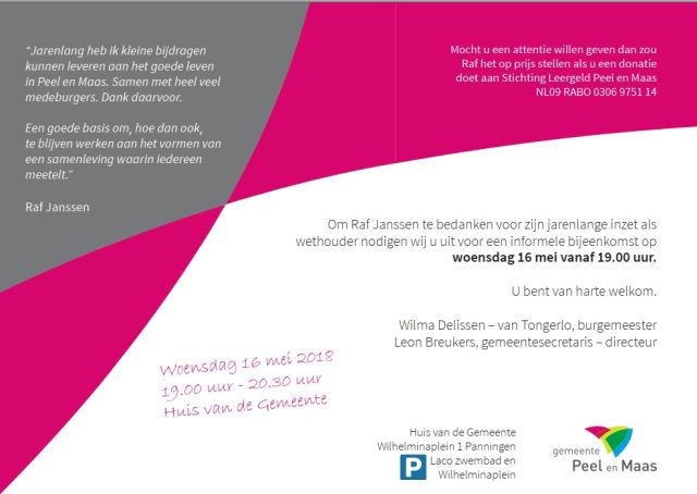 Uitnodiging afscheid Raf Janssen Gepubliceerd 26 april 2018 op 640 × 454 in Uitnodiging afscheid Raf Janssen